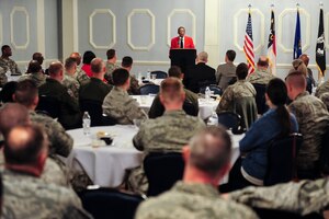 March 24, 2015 Team Seymour honors past, celebrates future with local Tuskegee Airmen Chapter Members of the Wilson V. Eagleson Chapter of Tuskegee Airmen joined Airmen of the 4th Fighter Wing for a heritage luncheon at Eagle's Landing, March 18.Retired Maj. Roy White, Eagleson Chapter vice president and historian, highlighted the event as the keynote speaker and shared his account of