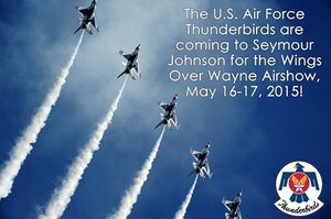 Dec. 10, 2014 PRESS RELEASE -- Seymour Johnson AFB to host Thunderbirds at Wings Over Wayne Airshow Seymour Johnson Air Force Base, North Carolina, is scheduled to hold the free Wings Over Wayne Open House and Airshow, featuring the U.S. Air Force Thunderbirds, May 16 and 17, 2015.The Thunderbirds and the 4th Fighter Wing's very own F-15E Strike Eagles will be featured with support from many other