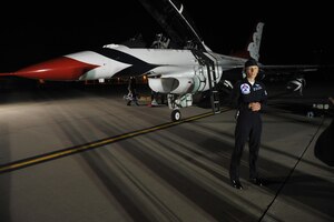 Feb. 14, 2011 SJ prepares for Thunderbirds Preparation for this spring's "Wings Over Wayne" air show and open house are in full swing as the event schedule becomes finalized, and the months leading up to the big weekend quickly slip away.As part of the pre-show preparation Thunderbird pilot, Capt. Kristin Hubbard, visited Seymour Johnson Air