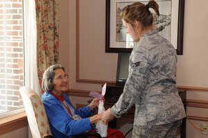 Feb. 17, 2011 Airmen spread love, appreciation, to veterans Airmen from the 4th Fighter Wing did their part to spread the love during a visit to The Pines Assisted Living Facility in Goldsboro as part of a Valentines for Veterans Program, Feb. 10.A dozen Airmen from various squadrons on base distributed Valentine's Day cards made by local elementary school
