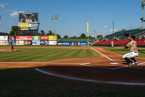 June 13, 2016 SJ Airman throws the first pitch Tech. Sgt. David Kelly, 4th Security Forces Squadron anti-terrorism program manager, threw out the first pitch at a Carolina Mudcats baseball game during a military appreciation night, June 11, in Zebulon, North Carolina. The ceremonial first pitch is a longstanding ritual of American baseball in
