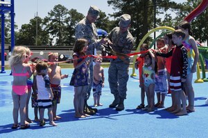 May 26, 2016 Team Seymour splashes into summer with grand re-opening Team Seymour kick-started the summer with the grand re-opening of Debden Park, featuring a brand new splash pad, May 24, 2016.More than 300 Airmen and their families attended the event. Col. Joseph Slavick, 4th Mission Support Group commander, and Chief Master Sgt. Shane Wagner, 4th Fighter Wing