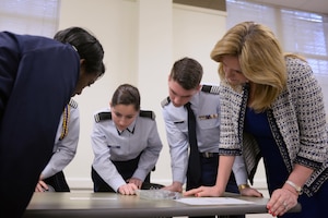 Feb. 29, 2016 SecAF visits SJAFB The Honorable Deborah Lee James, Secretary of the Air Force, participates in a group leadership problem scenario with Reserve Officer Training Corps cadets from several universities, Feb. 19, 2016, at Duke University in Durham, North Carolina. As a Duke University alumnus, James returned to her alma