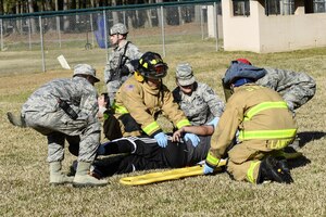 March 15, 2016 SJ, local emergency responders, participate in mass casualty exercise Members of the 4th Fighter Wing conducted a mass casualtyexercise, March 9, to test emergency medical response from both on and off baseemergency personnel to a simulated explosion. Players from multiple squadrons on base, as well aspersonnel from Wayne County emergency medical services and Wayne
